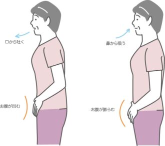 - 口からゆっくり吐いて、お腹をしぼめる